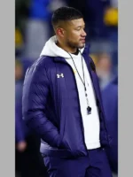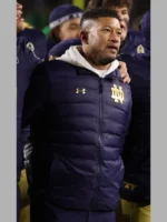 The Marcus Freeman Notre Dame Jacket is a picture of undying style and practicality, stimulated through the charismatic head educate of the Notre Dame Fighting Irish. Crafted from super parachute material, this blue puffer outerwear is designed to provide every sturdiness and a graceful, contemporary look. The outer layer offers resistance closer to the factors, making it an wonderful choice for outside sports activities activities sports sports or cold recreation nights. Inside, the smooth lining guarantees unrivaled comfort, allowing you to stay warmth and comfy in a few unspecified time in the destiny of the day. The the front zipper closure no longer first-rate affords a hint of current appeal but furthermore offers consolation for smooth positioned on. Its stand-up collar complements its sporty aesthetic on the equal time as presenting greater safety in competition to the bloodless. The thoughtful format guarantees this apparel is as beneficial as it’s miles fashionable.