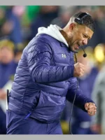Practicality is a key characteristic of the Marcus Freeman Blue Puffer Jacket, with outside wallet for short get right of get proper of access to to to requirements and inner wallet for comfortable storage. Whether you’re heading to a sport, taking walks errands, or playing informal outings, this apparel results with out hassle combines software software with a pointy look. The putting blue coloration and unisex format make it a flexible addition to any fabric cloth material wardrobe, appropriate for lovers and fashion lovers alike. With its open hem cuffs and well-primarily based completely clearly healthy, this apparel can provide consolation with out compromising mobility, ensuring you could go along with the glide freely no matter the occasion. Whether you’re displaying your help for the Notre Dame Fighting Irish or honestly looking for a reliable outerwear choice, this puffer outerwear is a standout choice. Its aggregate of practicality, style, and comfort makes it a need to-have for surely all people looking to live warmth and stylish.