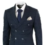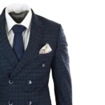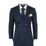 1920s Slim Fit Blue Lapel Double Breasted Blue Checkered Suit
