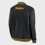 The Mike Tomlin Pittsburgh Steelers Black Jacket is a sleek and flexible piece that mixes style and luxury. Making it a absolutely quality preference for lovers and style lovers alike. Crafted with precision, this bomber clothing is crafted from super fleece cloth, making sure sturdiness and heat. Its timeless black coloration offers an detail of class, making it appropriate for numerous events. Whether you’re attending a interest or stepping out casually. The indoors of the apparel is covered with clean viscose, imparting brilliant consolation in a few unspecified time within the destiny of the day. The zipper-style the front closure now not notable complements its traditional bomber outerwear appeal however moreover makes it clean to location on and alter. A rib-knitted collar, along factor matching cuffs and hemline, guarantees a cozy in form at the same time as along with a fashionable contact to the general layout.